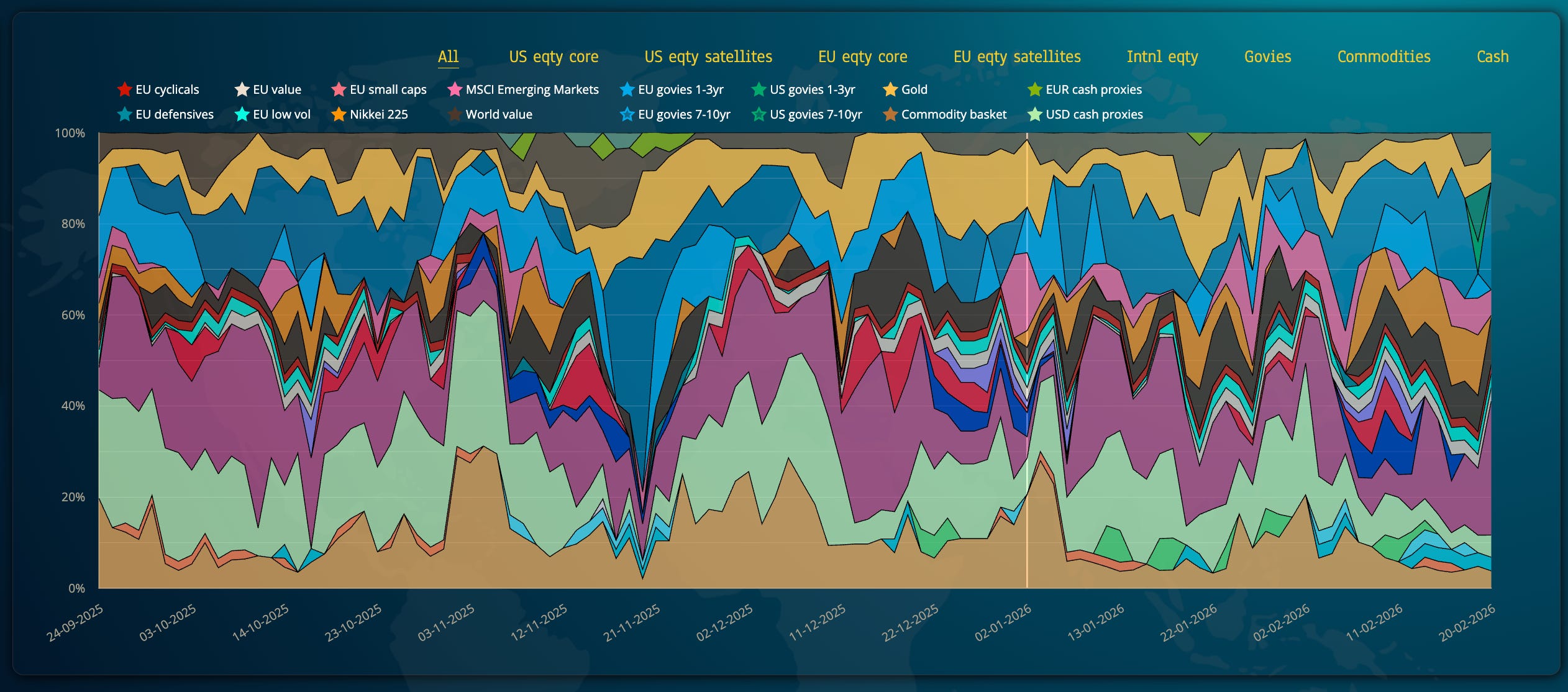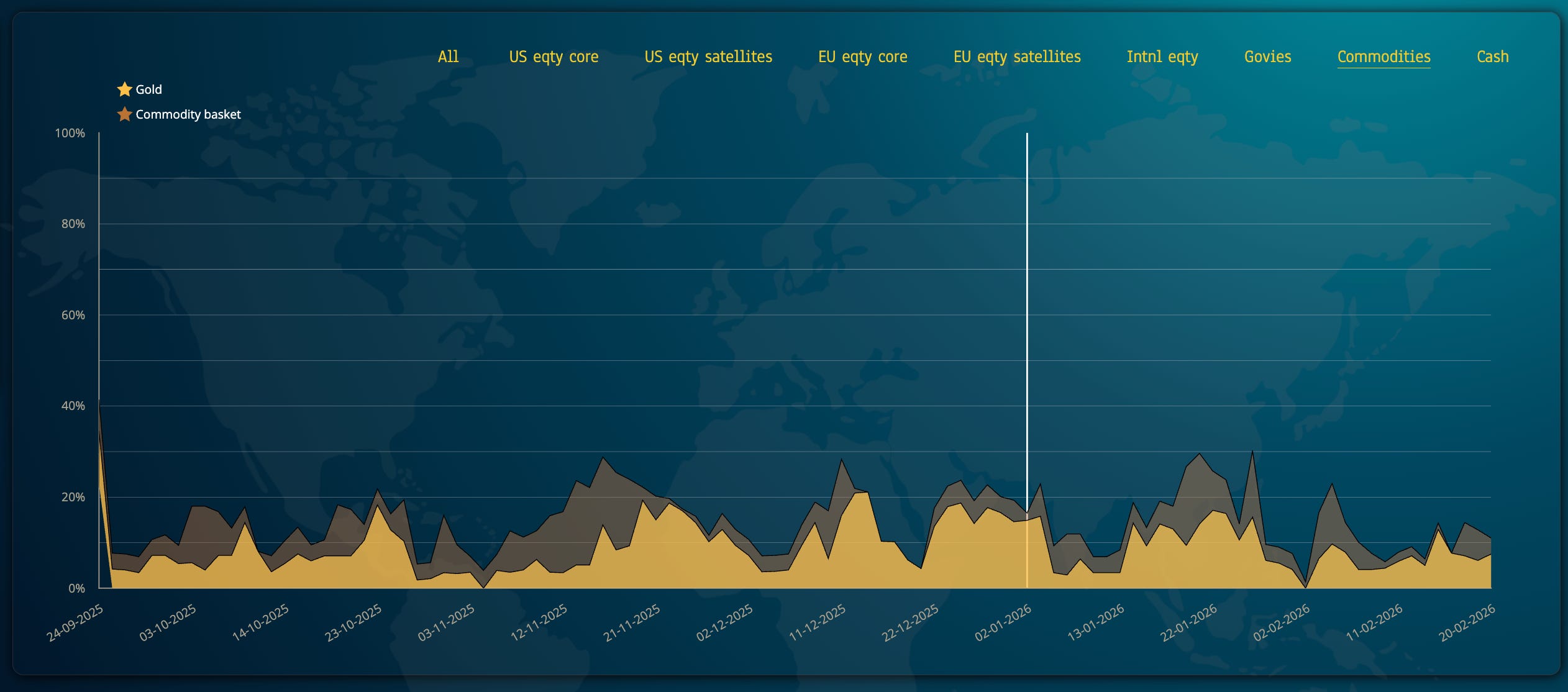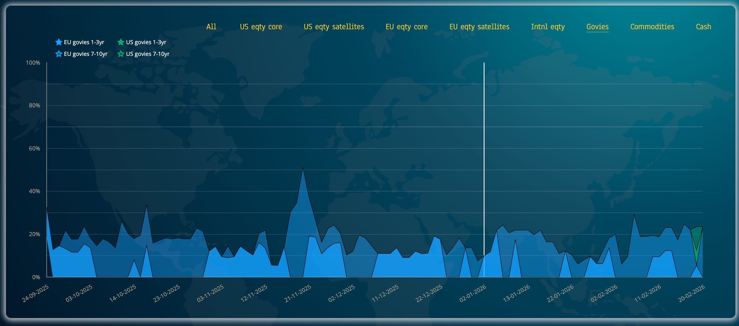 the bond basket is offering a steady 20% cushion from more volatility, and we are invested in the longer-end of European govies, offering positive returns in 2026