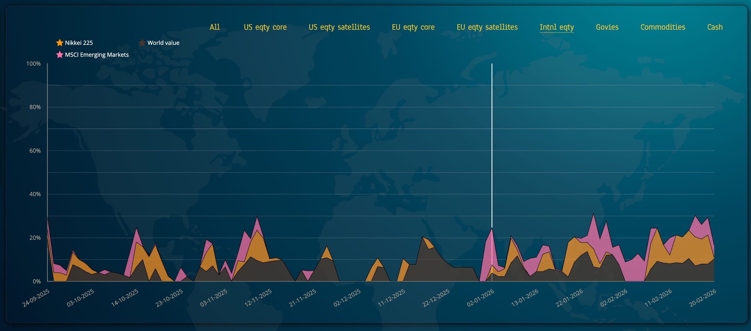 International indices (Japan, EM, World Value) are the key drivers of world stock performance this year. We have increased the exposure in 2026 even if we only recently removed some caps to limit their vol contribution, so exposure has become more meaningful Our algo has read well the direction,